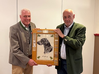 Unser Holländischer Freund Gerhard Frederik Grijsen aus Winterswijk (NL) wurde mit dem bronzenen und dem silbernen Leistungsabzeichen des JGHV für besondere Verdienste um das Jagdgebrauchshundewesen ausgezeichnet. Auch konnte er die Plakette des JGHV für erfolgreiches Führen und Abrichten von Jagdgebrauchshunden entgegennehmen.